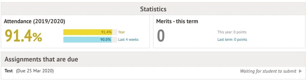 You can see your attendance and how many behaviour points you’ve been awarded. You can also see your assignments (see below for more details).